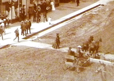 The Tabor House was located on the corner south of the Balle Brodersen store. It was divided into sections and moved in 1917. More on page 396.